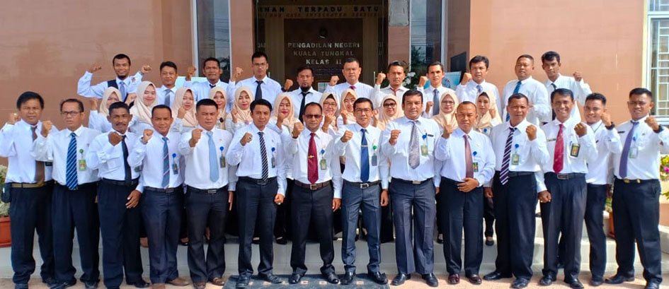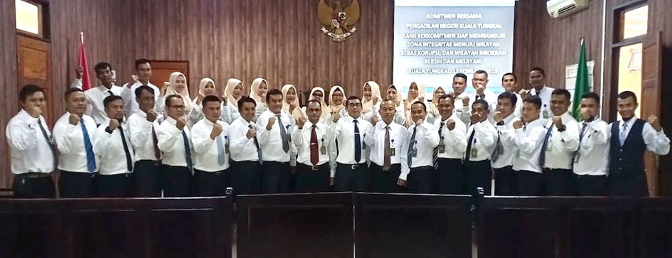 Setelah sebelumnya PN Kuala Tungkal mengadakan acara pembinaan dan sosialisasi Zona Integritas menuju WBK/WBBM, maka pimpinan beserta seluruh hakim/pegawai/honorer pada hari ini mendeklarasikan komitmennya untuk siap sedia membangun Zona Integritas menuju Wilayah Bebas Korupsi dan Wilayah Birokrasi Bersih dan Melayani di wilayah hukum Pengadilan Negeri Kuala Tungkal.