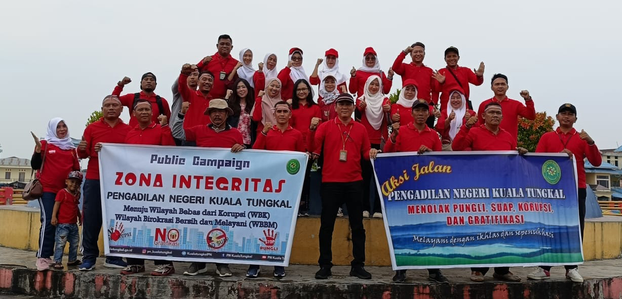 Dalam rangka membangun Zona Integritas Menuju Wilayah Bebas dari Korupsi (WBK) dan Wilayah Birokrasi Bersih dan Melayani (WBBM), Pengadilan Negeri Kuala Tungkal pada hari Jum’at tanggal 18 Agustus 2023 menggelar kegiatan Public Campaign Zona Integritas.