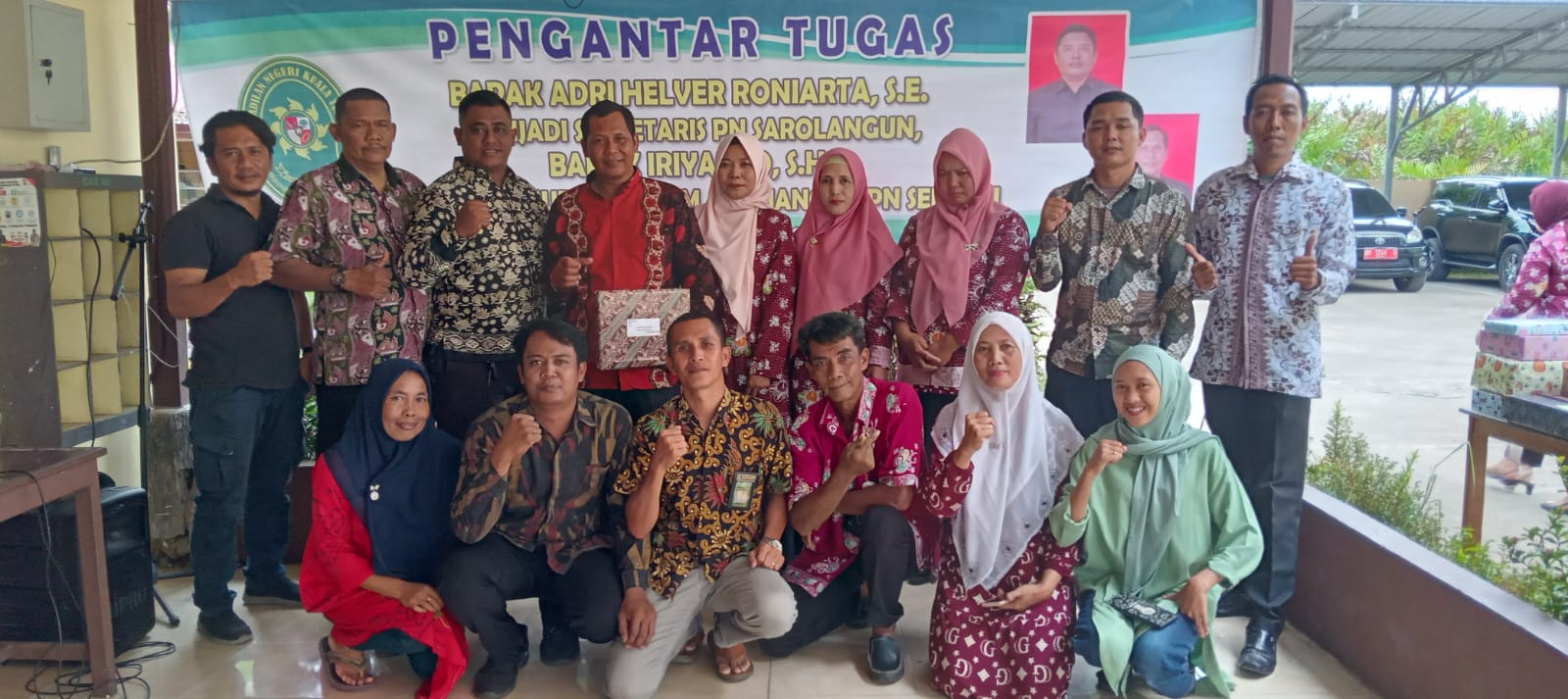 Bertempat di pendopo halaman belakang kantor, Bpk. Sangkot Lumbantobing selaku Ketua memberikan pesan dan kata-kata perpisahan kepada pejabat yang akan dilepas. Beliau menyampaikan rasa terima kasih atas pengabdian Bpk. Adri Helver Roniarta dan Bpk. Iriyanto.