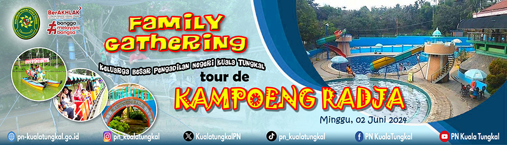 Sehingga Ketua Pengadilan Negeri Kuala Tungkal Bpk. Sangkot Lumbantobing berinisiatif untuk mengadakan Family Gathering, yaitu kegiatan liburan dan rekreasi dengan mengajak keluarga masing-masing. Pada kesempatan kali ini tempat yang dipilih untuk family gathering ialah di Kampoeng Radja, sebuah area wisata yang berada di Kota Jambi. Disini seluruh keluarga besar Pengadilan Negeri Kuala Tungkal hadir untuk mengikuti berbagai perlombaan, bermain bersama menjaga kekompakan serta menjadi ajang silaturahmi.
