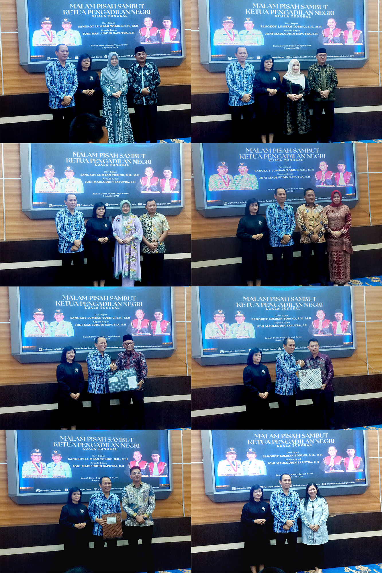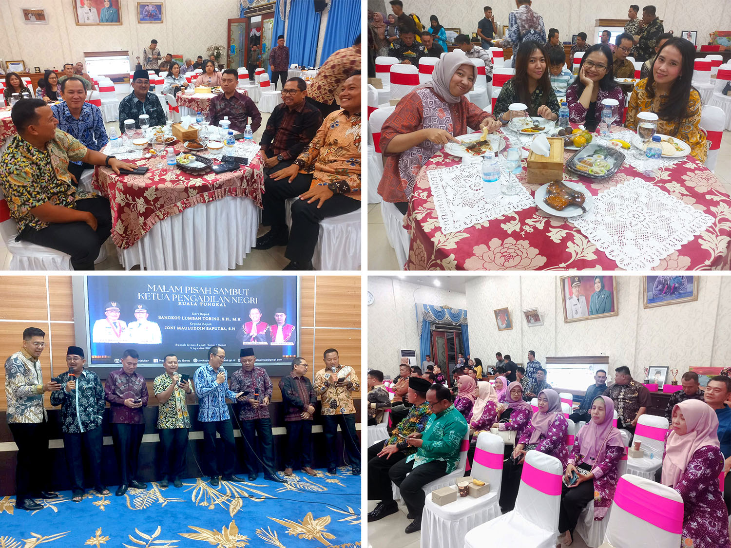 3 tahun sudah Bpk. Sangkot Lumbantobing menjadi bagian dari Kabupaten Tanjung Jabung Barat, setahun pertama sebagai wakil ketua, dan dua tahun terakhir sebagai Ketua Pengadilan Negeri Kuala Tungkal membuat persahabatan dan rasa kekeluargaan dengan pemerintah setempat menjadi sangat dekat. Malam ini bertempat di kediaman rumah dinas bupati Tanjung Jabung Barat, telah digelar acara malam pisah sambut dari Bpk. Sangkot Lumbantobing kepada Bpk. Joni Mauluddin Saputra.