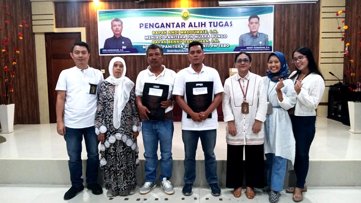 Bpk Andi Maddumase menjabat sebagai Panitera di PN Kuala Tungkal selama kurang lebih 2,5 tahun sedangkan Bpk Benny Ramadhan telah bertugas sejak menjadi CPNS 14 tahun yang lalu dengan beragam pengalamannya dibidang kesekretariatan maupun kepaniteraan hingga terakhir menjabat sebagai Jurusita. Nampak berat terlihat dari beliau berdua untuk meninggalkan PN Kuala Tungkal dengan penuh suka dan dukanya selama ini.