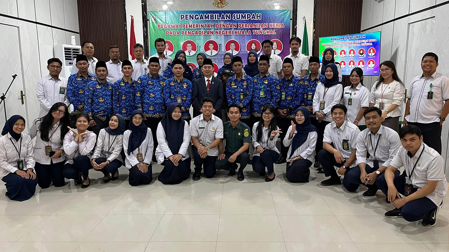 Setelah mengabdi selama belasan tahun, sebanyak 12 orang tenaga honorer (PPNPN) di Pengadilan Negeri Kuala Tungkal pada hari ini secara resmi telah diangkat dan diambil sumpahnya menjadi Pegawai Pemerintah dengan Perjanjian Kerja (PPPK). Di hari yang sangat membahagiakan ini para PPPK tersebut mengajak serta keluarga masing-masing untuk menyaksikan seremoni sakral ini. Proses yang begitu panjang nan berliku telah dilalui penuh perjuangan hingga sampailah saat yang ditunggu ini peluh keringat tersebut membuahkan hasilnya.